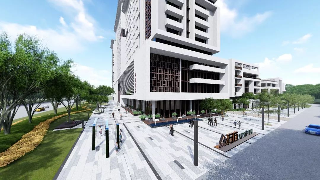项目坐落于广东清远,堪称崛起的城中新势力。设计师试图以电路和芯片为设计灵感,解构成简约明朗折线与点线面的空间解构,诠释现代创新创意产业园的景观设计。
