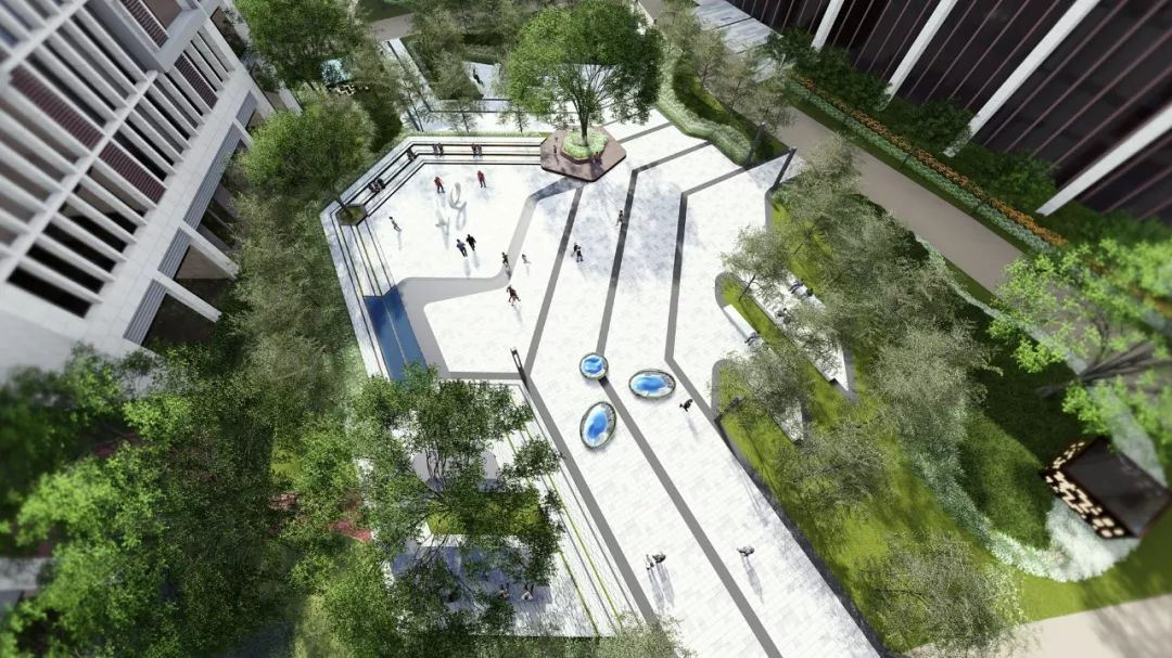 6686体育设计师运用明朗的线性设计元素,达到引导人流视线的设计目的,异形花池的婉转曲异与地面灰色折线延展,具备引导功能的线条搭配纯粹白色调,未来感、科技感十足。