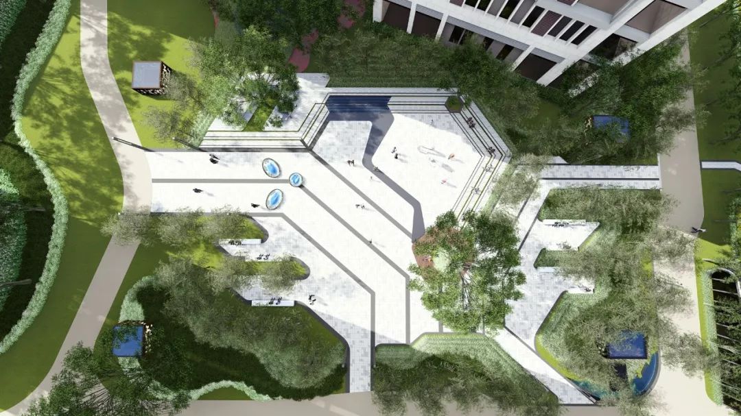 中庭大广场,6686体育设计师以开放性大空间为主,搭配多样私密性讨论小空间,同时引入共享理念,引入活力的共享空间。广场外围绿树环绕,打造绿色生态环境。
