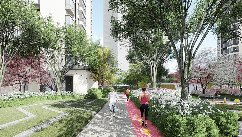 金山时代的另一个区域,更偏向于年轻化的客户群。绿动园林设计师令草坪、汀步、流水装点,身处其间,浅墨清韵;如诗入画,让城市归来的你,享尽自然。