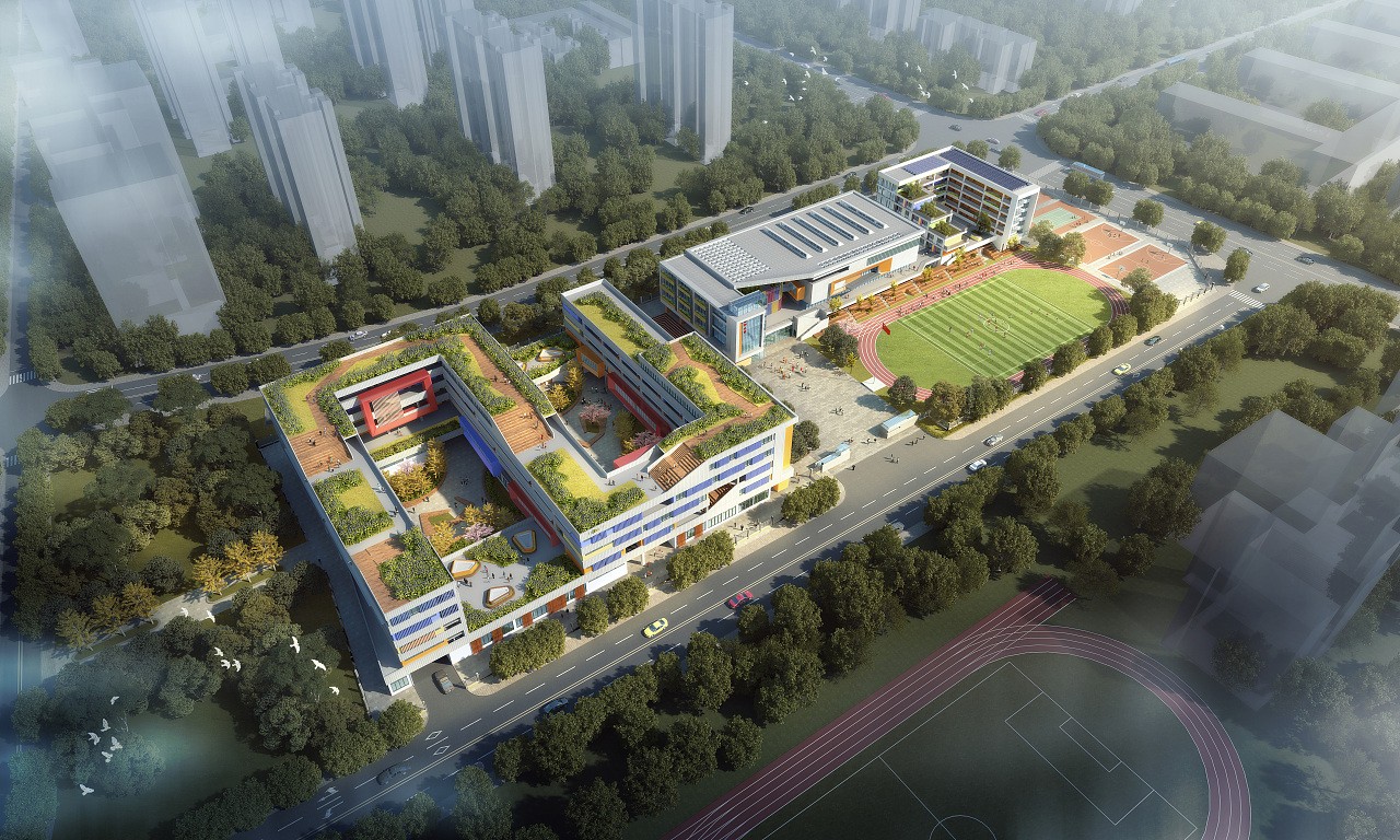 学校体育活动区是学校开展体育活动的主要场所。一般规划应在远离教学区或行政管理区,而靠近学生生活区的地方。在体育活动区的外围常用隔离林带或树林将其分割,减少相互干扰。这是个可交流的功能性公共空间,也是一个集人文和功能与一体的聚会场所,为学生提供休息空间的同时还能举办一些校园活动。